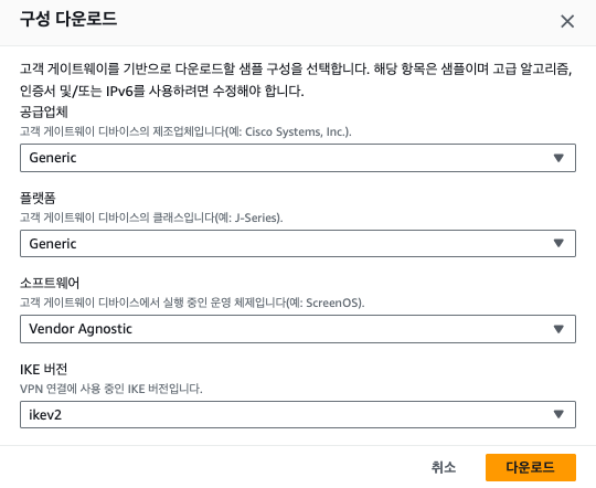 AWS 측에서 생성한 VPN 연결에서 Configuration을 다운로드하여